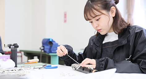 リペア基礎では、管楽器のリペアや使用工具、安全衛生など、楽器の扱い方の基本を学びます。また、応用では課題の難度を上げ、作業の効率化などを学びます。
