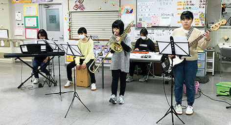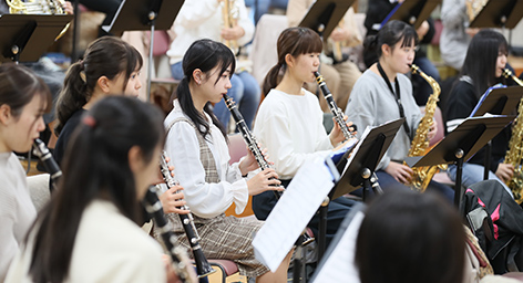 クラシックからポップス、ジャズまでさまざまなジャンルの曲を取り上げ、それぞれの特徴を理解し、演奏技術を磨きます。また、年間15~20回の地域での学外演奏や年1回の定期演奏会で、生涯楽器演奏を楽しめる実践的な演奏者を目指します。