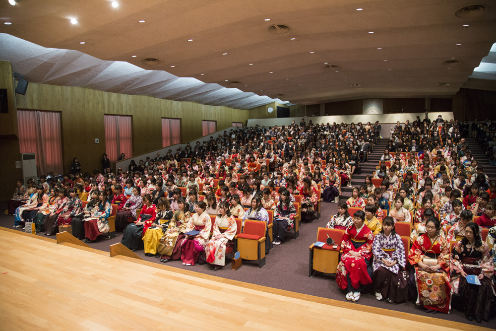 幼児教育学科、デザイン美術学科、音楽総合学科、歯科衛生学科、看護学科の卒業生256名が巣立っていきました。各学科の総代に、卒業証書・学位記が渡された後、学長から『社会は皆さんのこれからの成長に期待している。一歩一歩、誠実に着実に成長してほしい』と、はなむけの言葉が贈られました。
