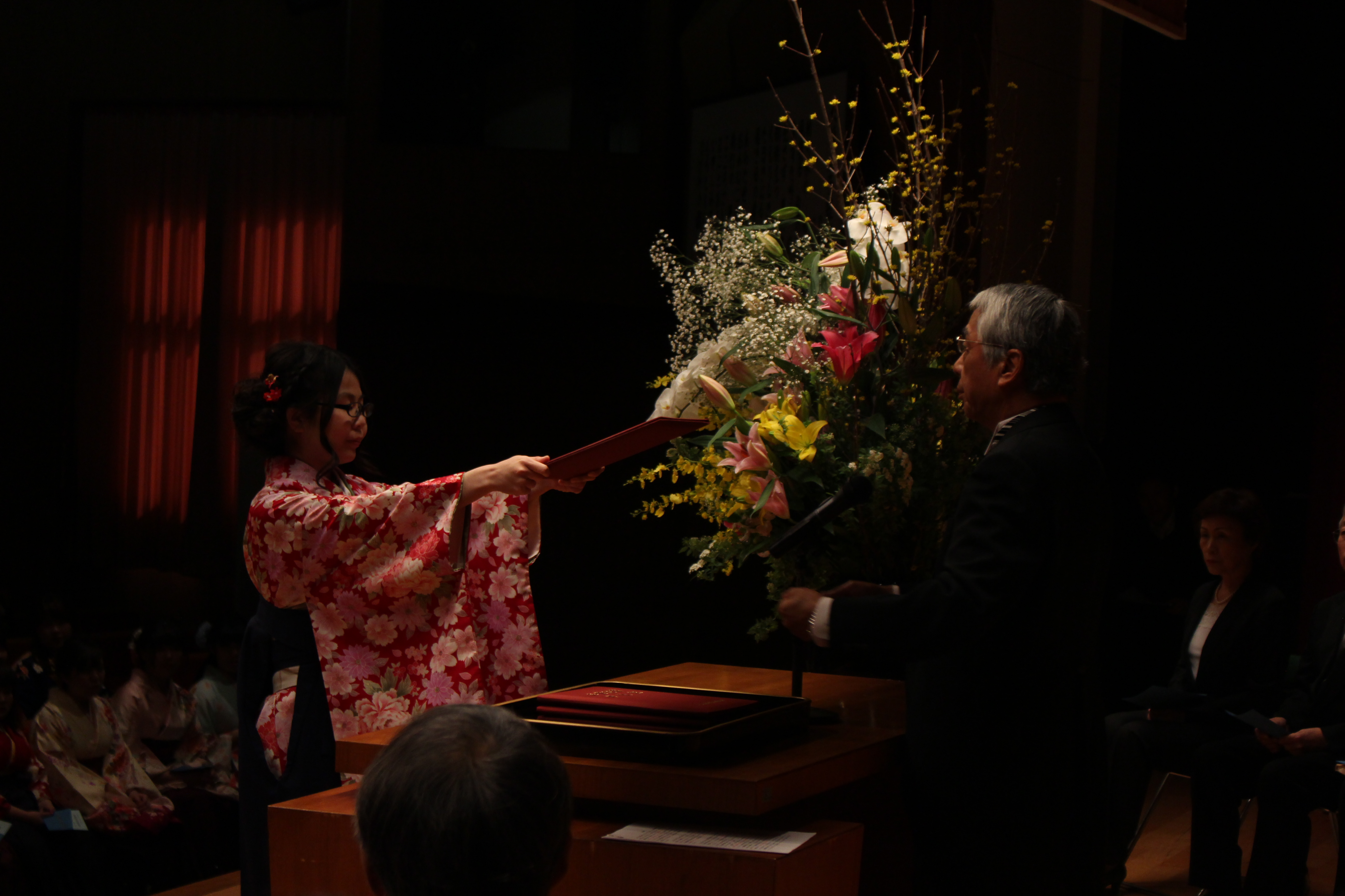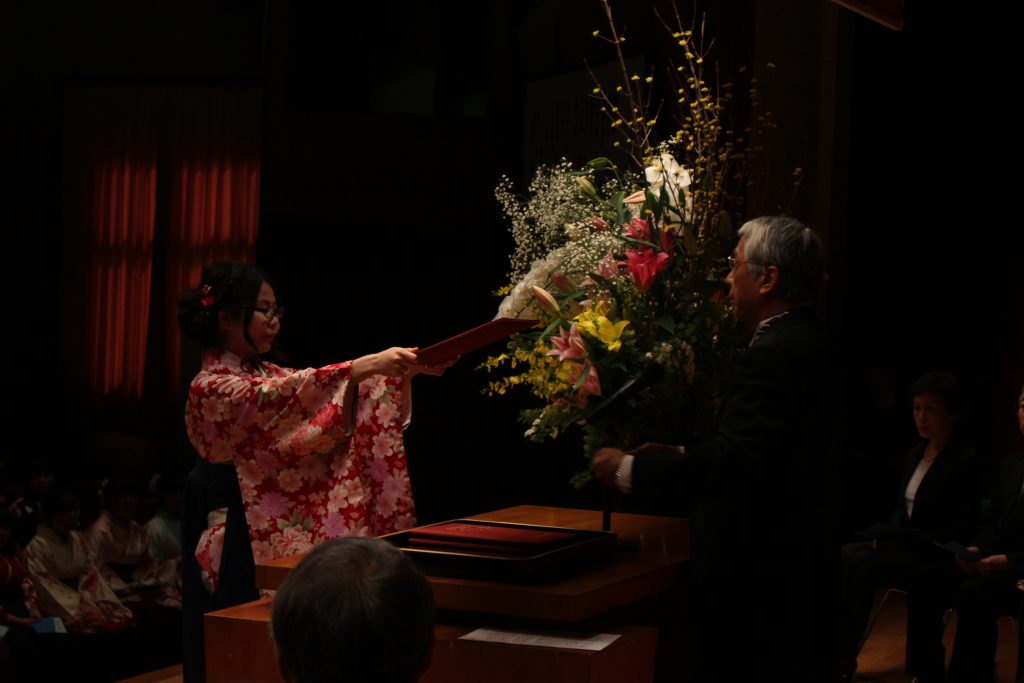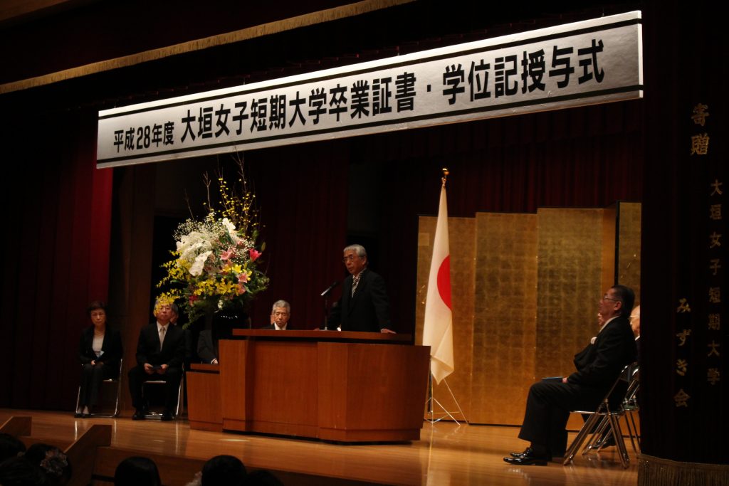 3月12日(日)平成28年度 卒業証書・学位授与式が挙行されました 3月12日(日)、本学みずきホールにて平成28年度 卒業証書・学位記授与式が挙行されました。幼児教育科、デザイン美術学科、音楽総合学科、歯科衛生科、看護学科の卒業生224名が巣立っていきました。各学科の総代に、卒業証書・学位記が渡された後、学長から、『持てる力を十二分に発揮して人生を切り拓いてほしい』とはなむけの言葉が贈られました。 卒業生たちは式典後会場を移し、卒業記念パーティが華やかに開催されました。 2017/03/13おしらせ