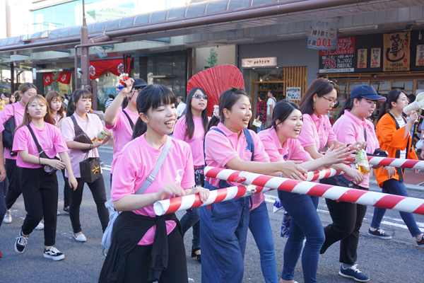 今年も学生・教職員を合わせて約95名が参加し、本学のマスコットキャラクター『みずっきー』の神輿をひきながら、各団体や企業の方々とともに大垣駅前通りを楽しく練り歩きました。