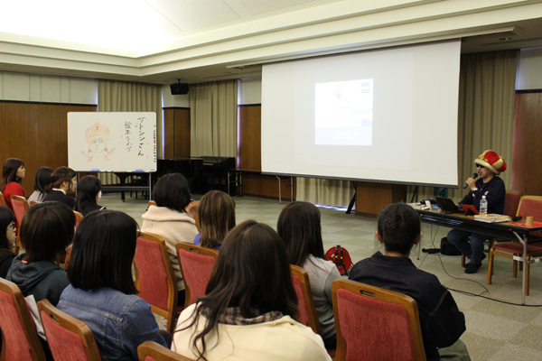 サトシン客員教授が特別講義を行いました。 11月14日(水) サトシン先生が『絵本・おてて絵本の魅力について』の特別講義を行いました。 絵本の面白さと大切さ、保育現場での活用も含めて、想いを語ってもらいました。また、学生と掛け合いながらの読み聞かせや「おてて絵本」を実演してもらい、貴重な経験をすることができました。 サトシンワールドを堪能しながら、「楽しい大人になる」という保育者として大切なことを学ぶよい機会となりました。 2018/11/29ニュース