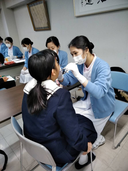 歯科衛生学科2年生 大垣商業高校・大垣工業高校で実習を行いました。 12月11日(火)歯科衛生学科2年生45名が高校で実習を行いました。 事前にタイムスケジュールを作成し、緊張しつつ高校生とコミュニケーションをとりながら、お口のチェック、ブラッシングの仕方や間食の取り方などについて歯科保健指導をしました。 今回の貴重な経験を生かして、今後の実習に取り組んでいきます。 2018/12/14ニュース