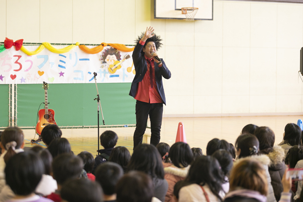 エンディングでは、NHK番組フックブックローのけっさくくん役の谷本賢一郎氏による「ファミリーコンサート」が開催されました。参加者全員が夢中になって歌遊びを楽しむことができ、とても素敵なコンサートとなりました。