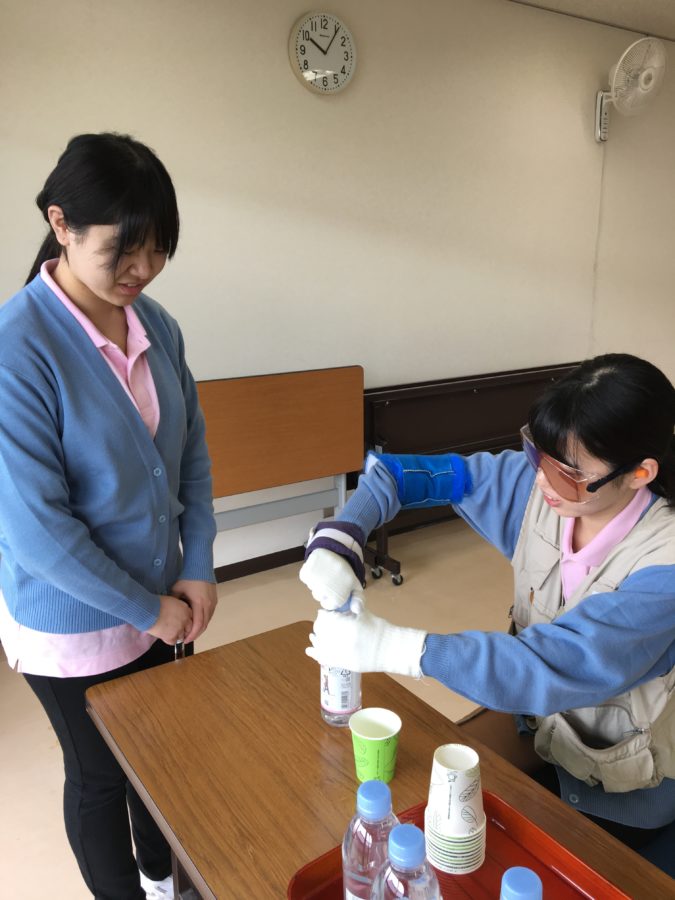装具を外した後はホッとしましたが、高齢者の気持ちと大変さが分かりました。今回の体験を経て、今後は高齢者に配慮した対応を心がけていきたいです。