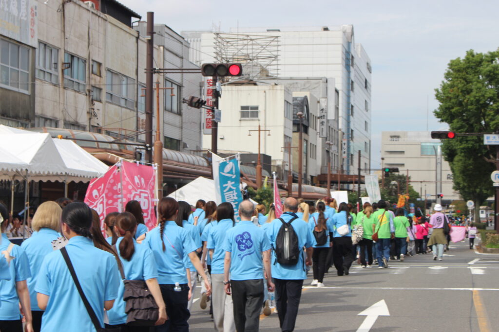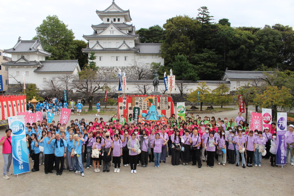 十万石まつりに参加しました! 10月12日(日)大垣市の歴史ある「十万石まつり」に参加しました。 今年は学生・教職員あわせて約180名が参加し、本学のマスコットキャラクター「みずっきー」の神輿をひきながら、各団体や企業の方々と共に大垣駅前通りを楽しく練り歩きました。 また、本部前パフォーマンスでは、本学のPRと大学祭のPRを行いました。 2025/10/17ニュース
