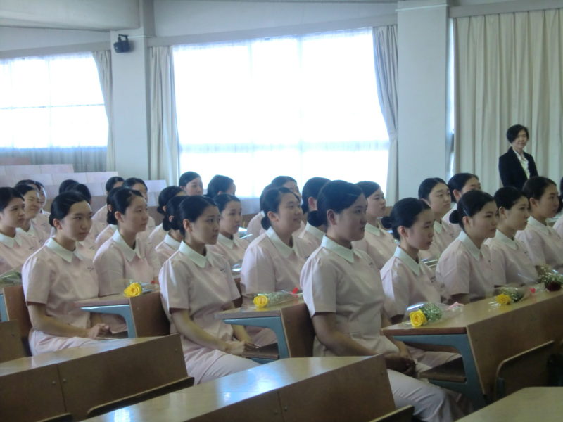 式では、最初に石川学科長より、臨床・臨地実習に向けて心温まる訓示があり、その後、実習長より1年間にわたる臨床・臨地実習の概要と心構えについて話がありました。