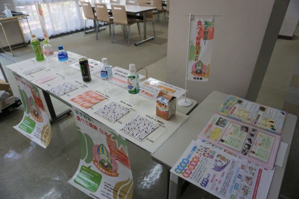食育のイベントを開催しました! 1月9日(木)に西濃保健所と協働して食育のイベントを開催しました。1日に必要な野菜の摂取量や、ジュースに混入されている砂糖の量が分かるような展示物を見た多くの人たちは驚いた様子でした。 子育てサロンぷっぷぁに遊びに来ていた親子の方々も展示物を実際に触って楽しんでいました。 また、食育イベントに立ち寄った人たちの中には、食生活に関するアンケート調査にも協力してくださいました。 食育イベントを通して、これまでの食生活を見直す貴重な機会となりました。 2020/01/17ニュース