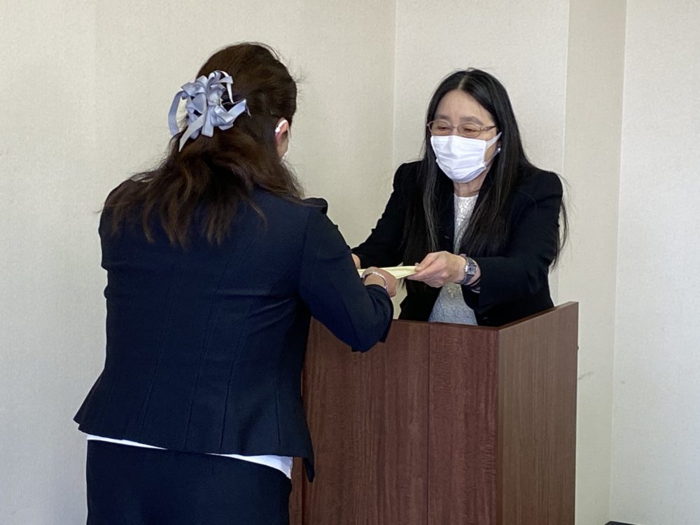授与式では、本プログラムの資格審査委員会会長である中野たみ子先生より、認定証を授与していただきました。