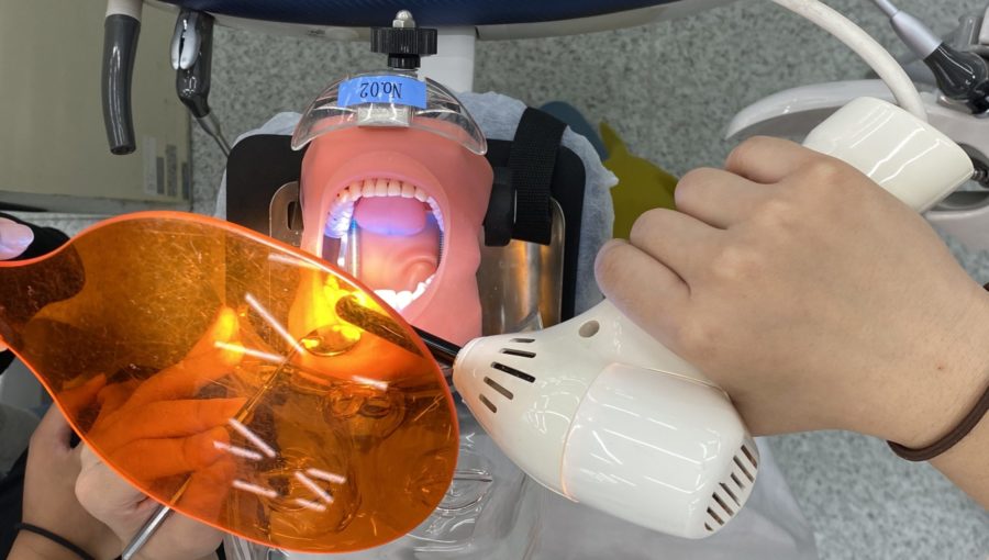 歯の模型を使って、歯を簡単に白くきれいにしました。