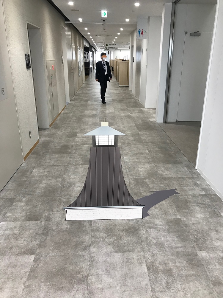 大垣市役所内にトリックアートが設置されました デザイン美術学科の学生、教員が制作したトリックアートが大垣市役所5階に設置されました。 大垣市の「トリックアートによる景観づくり」の実証実験として、大垣をモチーフとし、床や壁を使用したトリックアート作品を「映える」ことを意識して制作しました。 本学デザイン美術学科のほかに県内の学校がデザイン提供に協力しました。 3月末まで設置されています。ぜひカメラにお収めください。 水都の住吉灯台 ぽよんと水まんじゅう ねこたまり 立体的な案内表示 2021/03/16ニュース