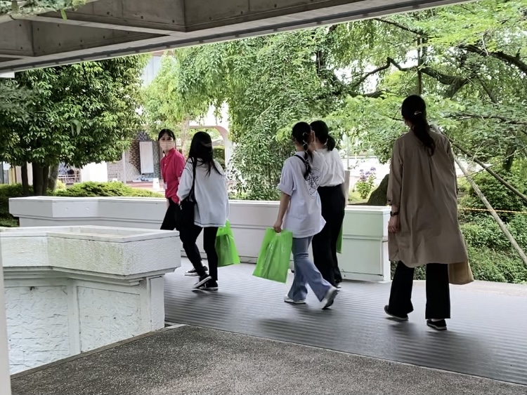 学生が参加者のみなさんとお話ししながら、キャンパスの中をご案内しました。