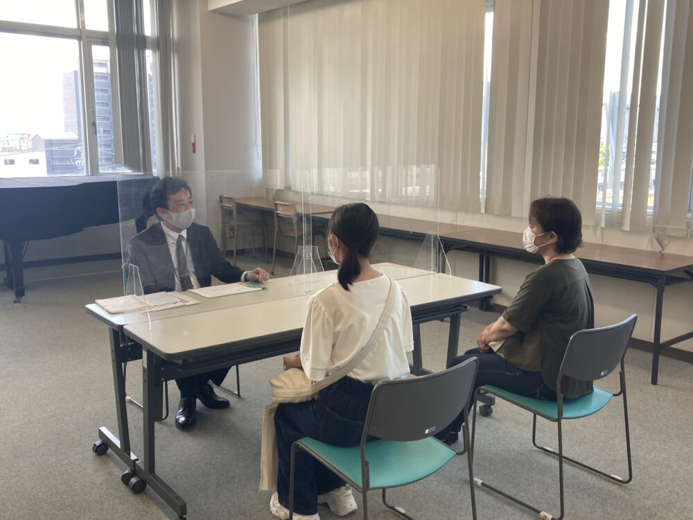 教員がコースの学びについての説明や入試・就職についてなどの個別相談を行いました。