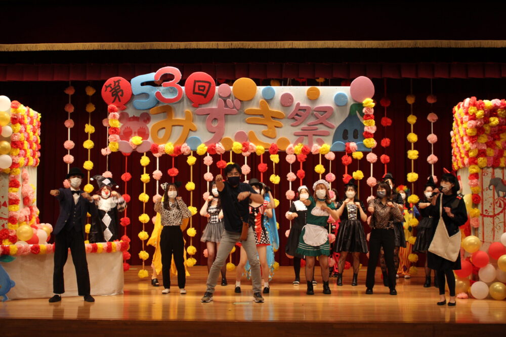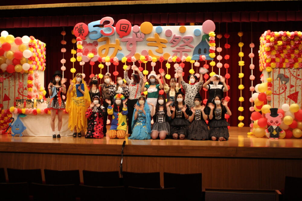 第53回「みずき祭」(大学祭)を開催しました 10月15日(金)、16日(土)に第53回みずき祭(大学祭)をオンライン・オンデマンドで開催しました。 今年は【THE GREATEST SHOW WOMAN ~ド派手に心を燃やせ~】をテーマに掲げ、初のオンライン開催の成功に向けて、学生・教職員が一丸となって取り組みました。 4つの学科の魅力がつまった動画や学友会のメンバーによる生配信、先生たちを巻き込んだ楽しい企画で大いに盛り上がりました。 ご視聴いただいた皆様、どうもありがとうございました。 2021/10/18おしらせ