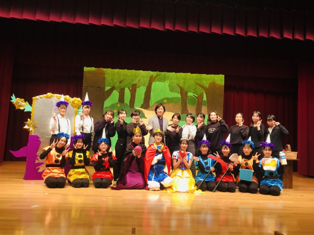 こども祭の劇発表は、幼児教育学科3年間の学びの集大成として、台本の作成から演出まですべて学生が行います。12月には本学客員教授である佐藤弘道先生にご指導いただき、よりお客様に伝わる表現を追求して練習を重ねることで、本番ではこれまでで一番の表現をお見せすることができました。