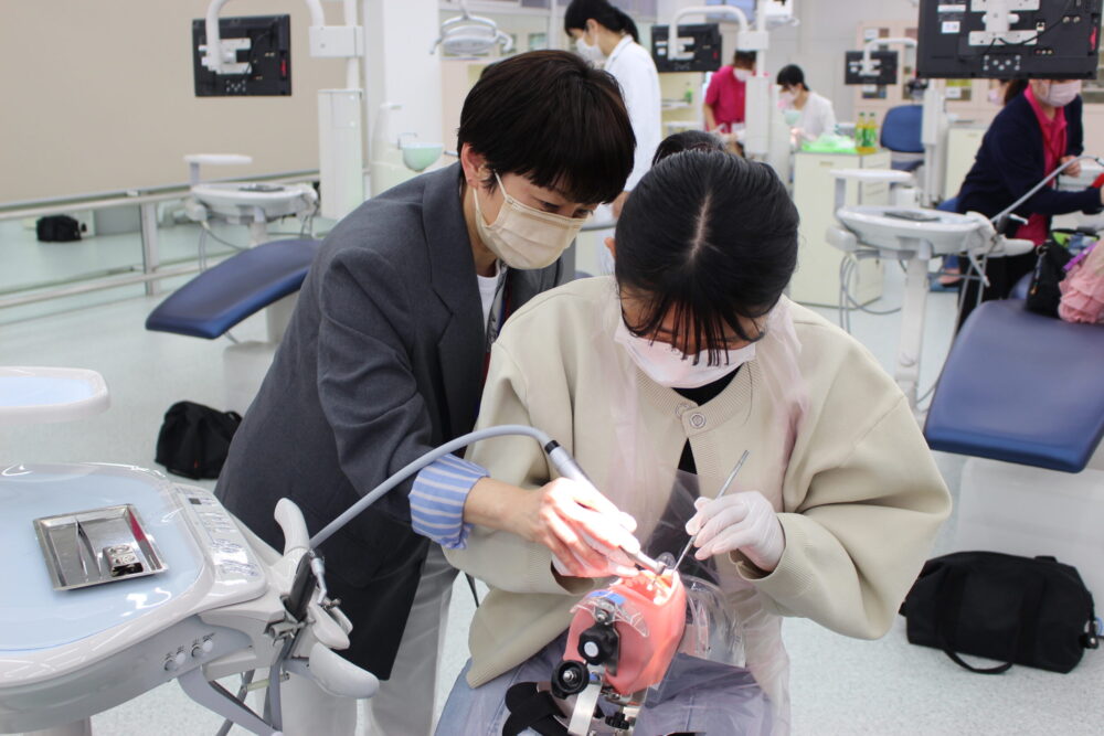 臨床歯科実習室で、実際に歯科医院で使用する器械を使った歯のクリーニングを体験しました!