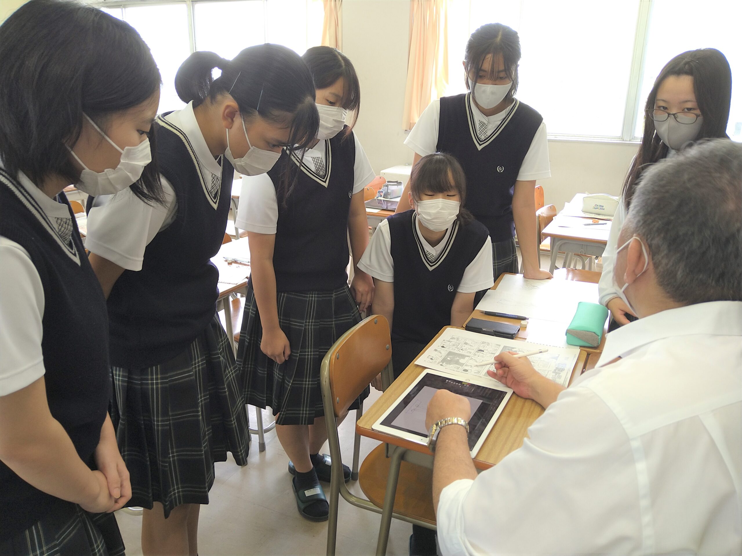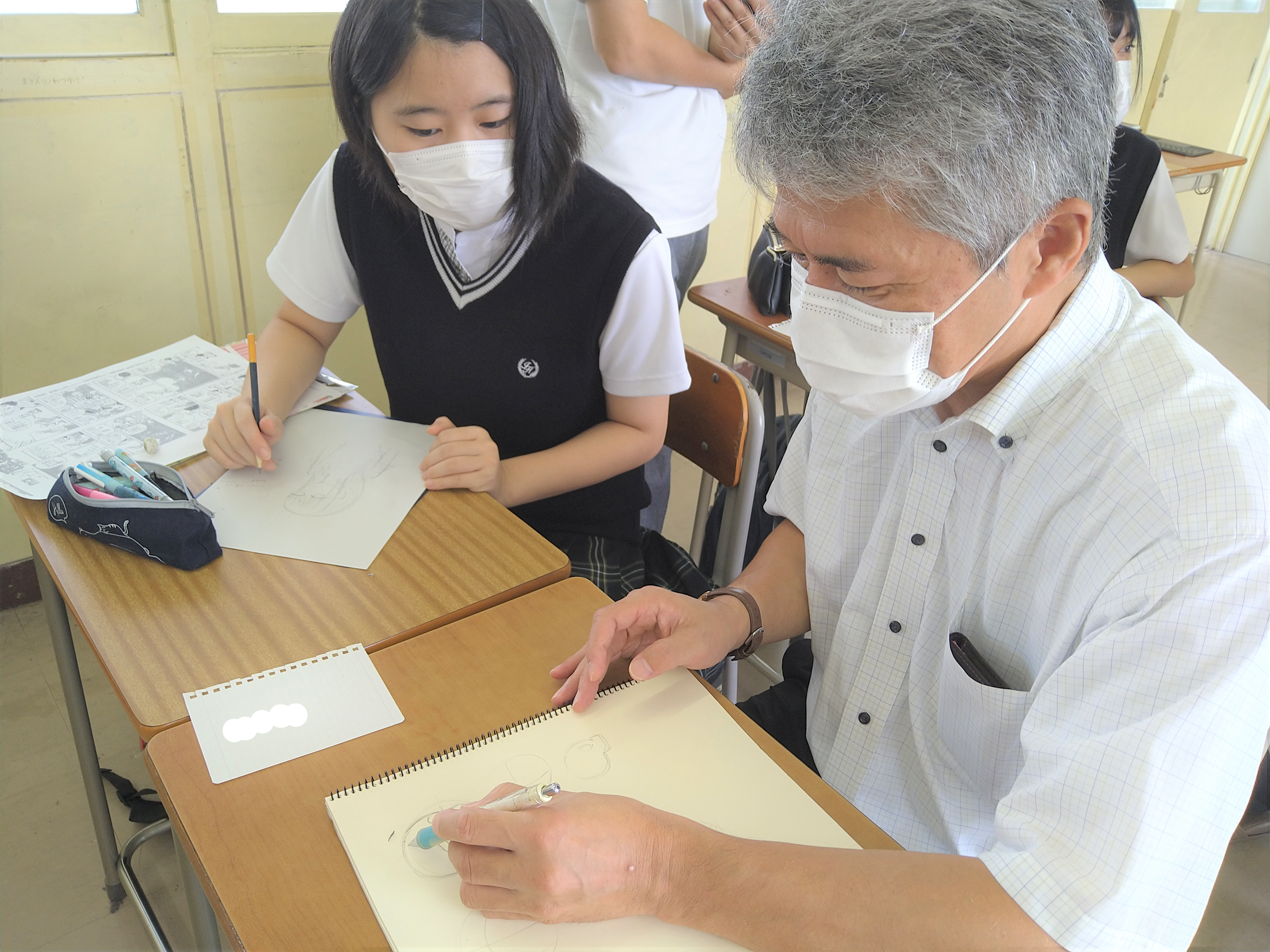 イラスト表現について講義と実技を通して指導を行いました。また、生徒が制作した作品を鑑賞することもでき、本学にとっても貴重な時間となりました。