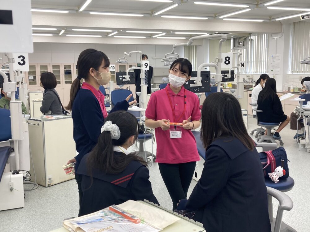 小型カメラを使って、自分の口腔内を観察しました。歯科衛生士の三大業務の一つ”保健指導”のポイントを、体験を通して学びました。
