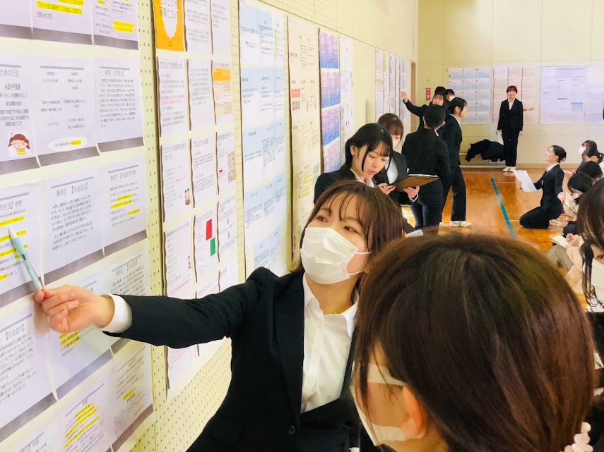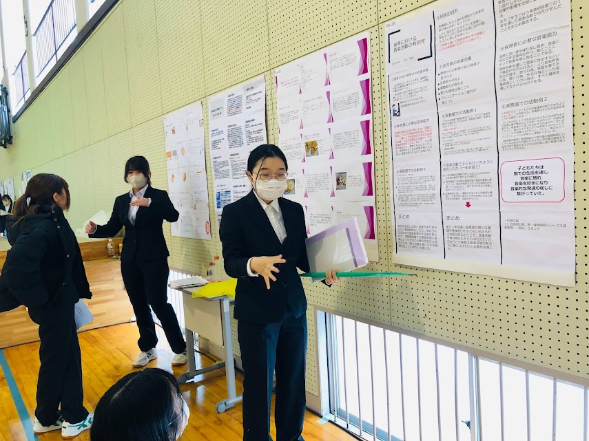 令和5年度 子ども研究「卒業研究報告会」を実施しました 1月26日(金)に幼児教育学科が子ども研究『卒業研究報告会』を行いました。 3年生がゼミで取り組んだ卒業研究の内容について、ポスター発表形式でまとめました。 どの学生も自分なりに調査・分析した保育のテーマについて堂々と発表し、一生懸命に取り組んでいる様子が伝わります。 後輩の1・2年生も参加し、先輩の研究発表に真剣に耳を傾けていました。 3年生の皆さん、お疲れさまでした。 2024/01/30おしらせ