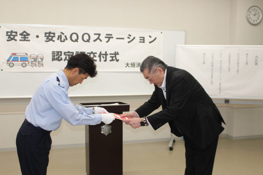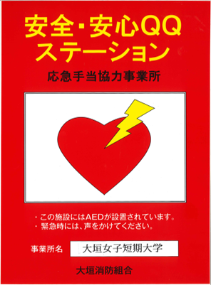 7月12日(金)に、本学は急病者や事故の負傷者への応急手当てに対応できる事業所として、大垣消防組合の「安全・安心QQステーション」の認定を受けました。