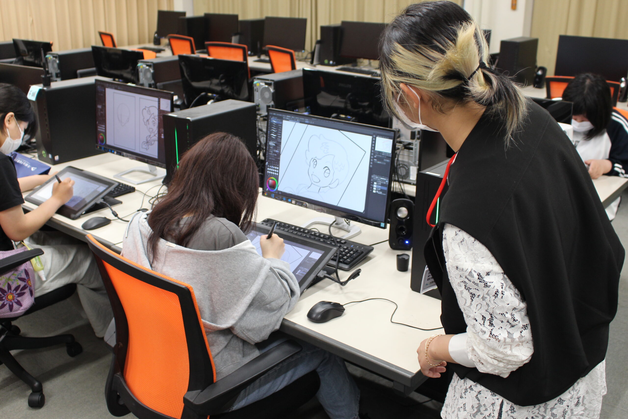 マンガ・コミックイラスト、ゲーム・CG、メディアデザインコースの体験授業から、気になる講座を一つ選び、体験しました。