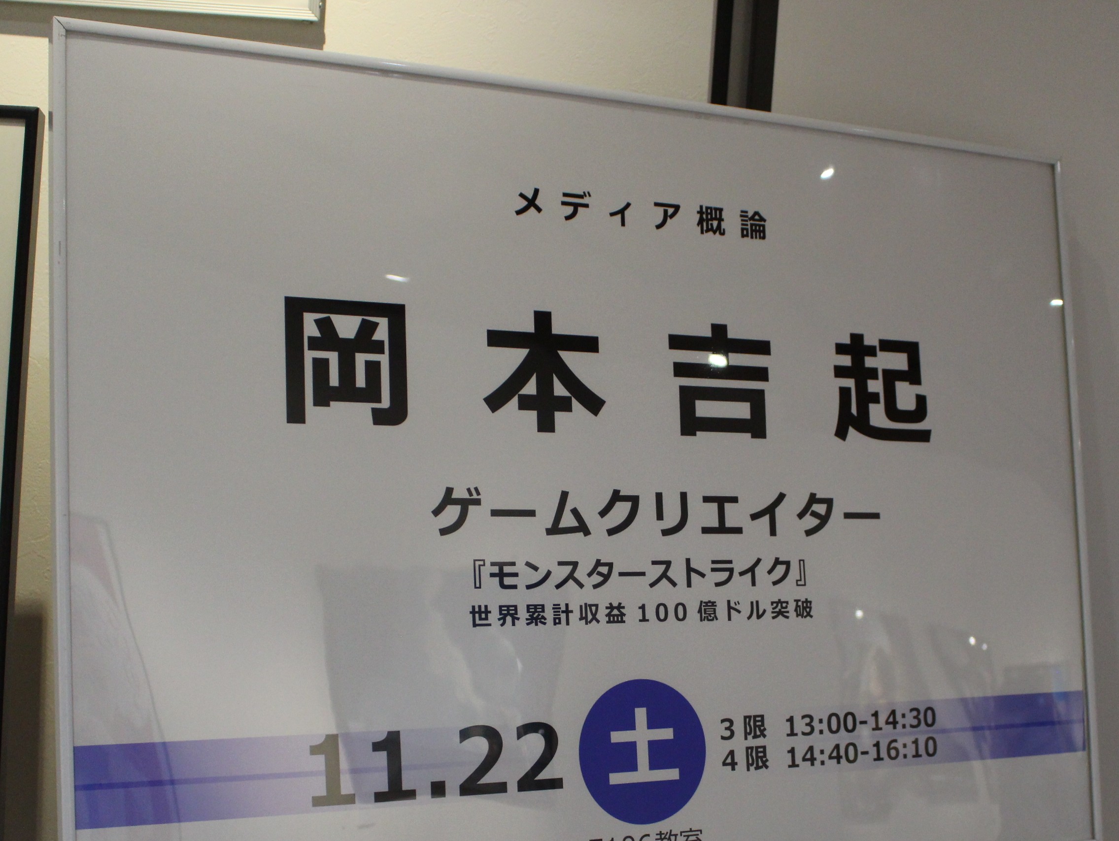 今回のゲスト講師は、『ストリートファイターⅡ』を開発し、『モンスターストライク』の初期開発に携わられた、ゲームプロデューサー・日本ゲーム文化振興団体理事長の岡本吉起氏をお迎えし、「人生のスイッチの入れ方について」ご講義いただきました。