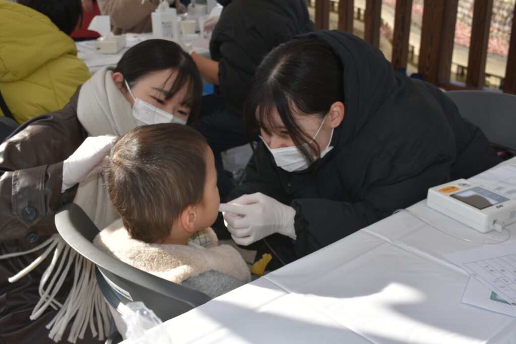 歯科医師が来場者の口腔内をチェックして、口腔内の状況を説明しました。また、口腔内(歯、歯肉等)の相談を行いました。
