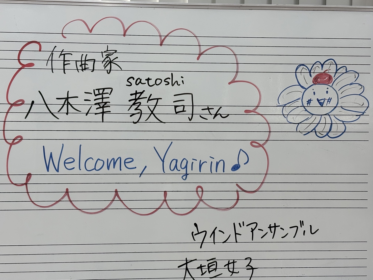 本日、大垣女子短期大学に、素敵なゲストが来てくださいました!吹奏楽や合唱の世界で数々の名曲を生み出されている作曲家、八木澤教司先生です。