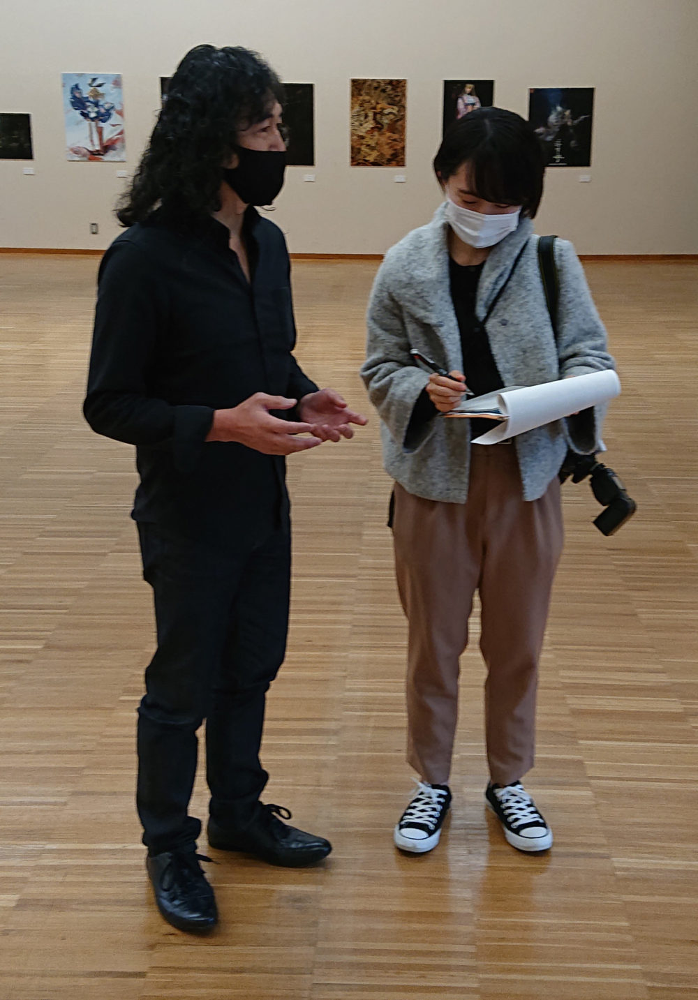 👇アジアグラフアートギャラリー代表である喜多見 康 先生も、来館されました。ご自身もCGアーティストである先生は、アジアの優れたCG作品を世に紹介することに尽力されています。同じく新聞社の取材に応答くださいました。