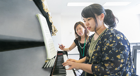 幼児向けの音楽を幅広く理解・研究することによって、さまざまな保育技術を修得していきます。音楽総合学科がある本学ならではの質の高い指導を実現しています。