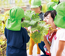 周囲のさまざまな環境に好奇心や探究心を持って関わり、それらを生活に取り入れていこうとする力を養い、乳幼児期にふさわしい生活を通して、環境と関わる力が育つ保育の実現を目指します。