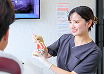 歯科衛生士は、女性が現場で長く活躍できる仕事のひとつです。妊娠・出産後に復帰して働き続ける先輩方を見て、女性としての人生と仕事を両立するために歯科衛生士の資格は大きな強みだということを実感しました。また、子どもからお年寄りまで幅広い年代の方たちから必要とされる、やりがいのある仕事です。さまざまな患者さんの口腔内の健康維持に貢献できるこの仕事に誇りを持って取り組んでいます。