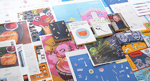 「ビジュアルデザイン分野」では、文字、イラスト、写真、映像などを使って視覚的に情報を伝達するデザインを学びます。グラフィックデザインを中心として、デザイン業界では必須のパソコンソフトの扱いを学ぶことはもちろん、広告デザイン、ブックデザイン、パッケージデザイン、Webデザインなどに関する、さまざまな実践的プロジェクトワークを通じて、クリエイティブ職への就職を目指します。