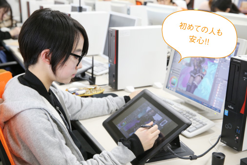 マンガ・イラスト・CG・デザインなどの体験授業を選ぶことができます。