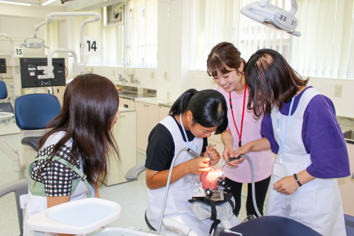 実際の歯科医院の機器を使って、歯科衛生士の仕事を体験します。