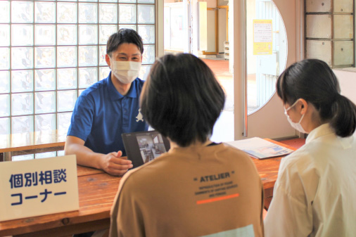 入試や下宿、奨学金のことなど相談できるブースがあります。