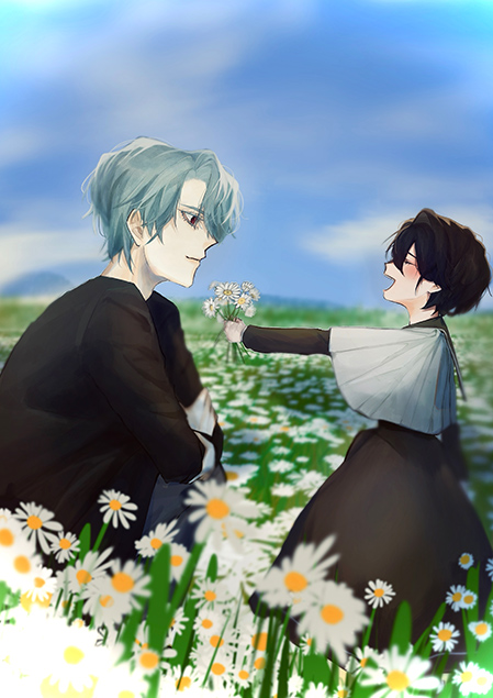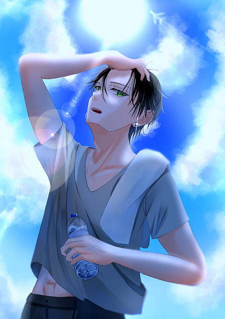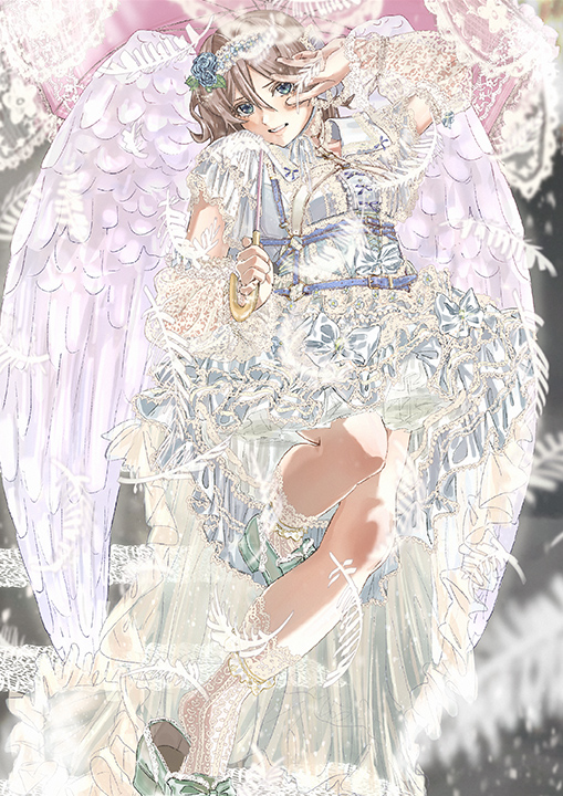 今回のイラスト作品では、画面の構図や人物のアングルに意識を向けたものが印象的でした。人物を下からあおるように、あるいは逆に見下ろすように描いたもの。そして顔の向きも正面ではなく左右に振った状態で描かれたものが多く見られました。