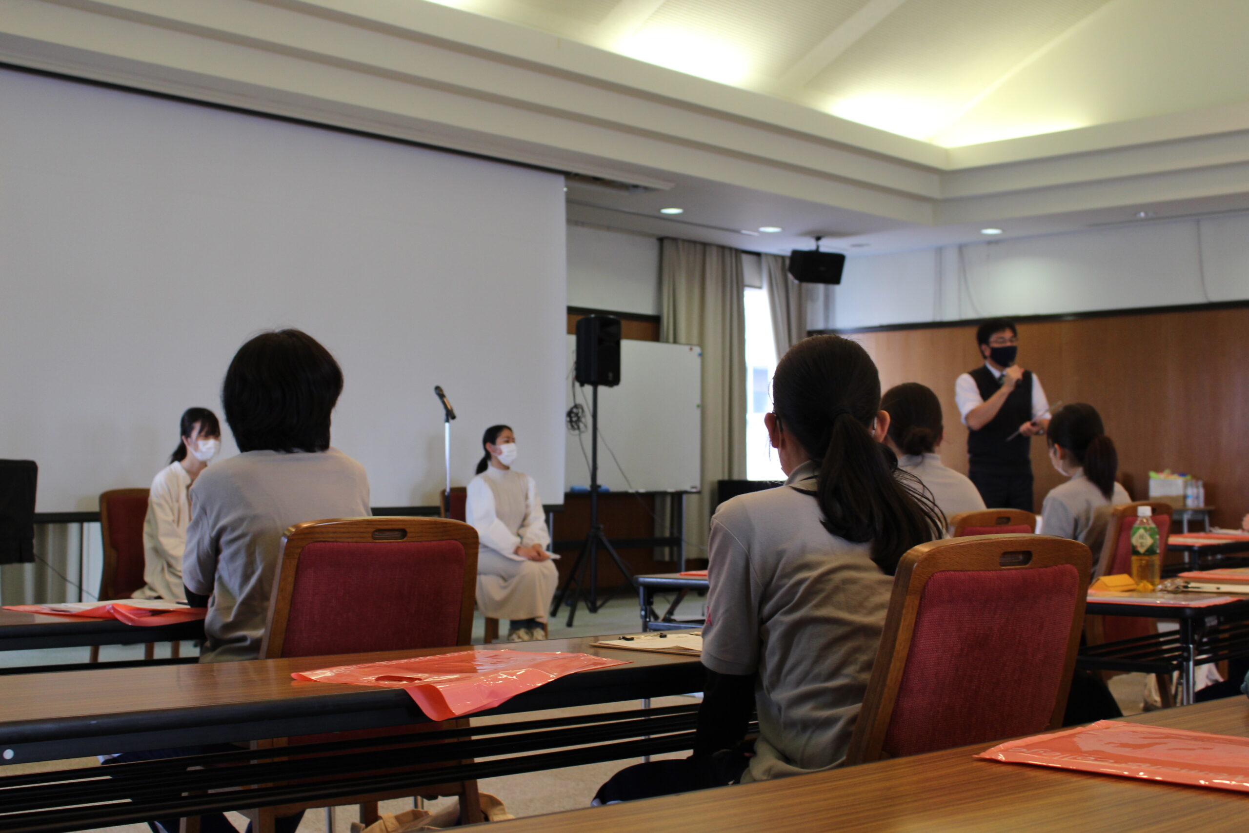 11月1日(月)“令和3年度「保育のしごと」見学会”が行われました 令和3年11月1日(月)岐阜県保育士・保育所支援センターが主催する“「保育のしごと」見学会”が行われ、岐阜県立大垣桜高等学校の生徒24名が本学幼児教育学科を訪れました。 短大生との交流や実際に行われている授業、短大生が制作した作品などを見学し、保育者養成校への理解を深めました。 2021/11/1ニュース