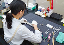現場経験が豊富な先生方から高度な修理技術を学べることはもちろん、幅広い視野で楽器や音楽業界についての知識を修得できるカリキュラムがあることも大垣女子短期大学の魅力。リペアの先生方からは楽器修理の奥深さ、おもしろさを教えていただくと同時に、技術を高めるためには努力を惜しまないことが大切だと学びました。現在、管楽器・弦楽器を扱う商社の技術部で自社商品の検品・メンテナンスや、お客様からお預かりした楽器の修理を行っていますが、在学中の学びは『高い技術力を持った信頼される技術者になる』という更なる夢に向かって日々努力を続ける原動力になっています。