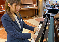 現在は楽器店に就職し、楽器や楽譜の販売をメインに大人の音楽教室の担当もしています。在学中に学んだ豊富な知識を活かしてお客様の楽器購入のサポートができたときには、とても喜びを感じます。
