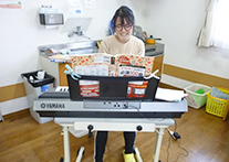 現在はデイセンターで生活支援員として利用者の支援や介助の仕事を中心に音楽療法も担当しています。